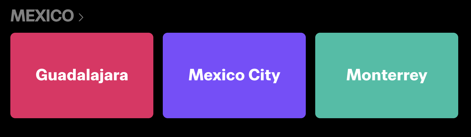 - 🇲🇽 멕시코: 멕시코시티, 과달라하라, 몬테레이