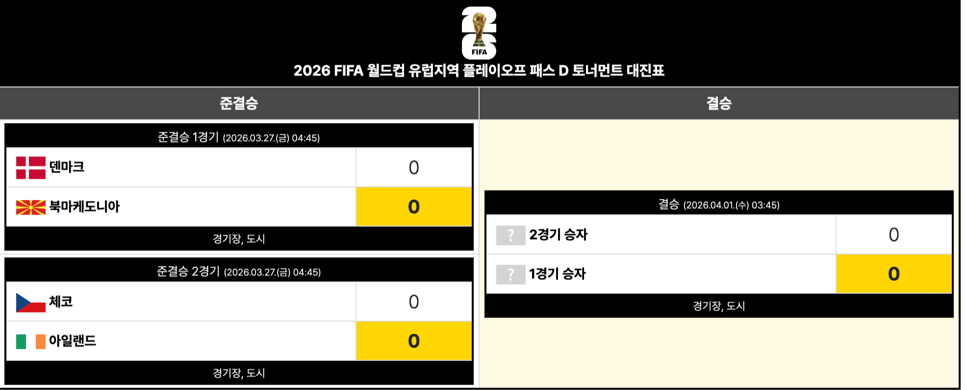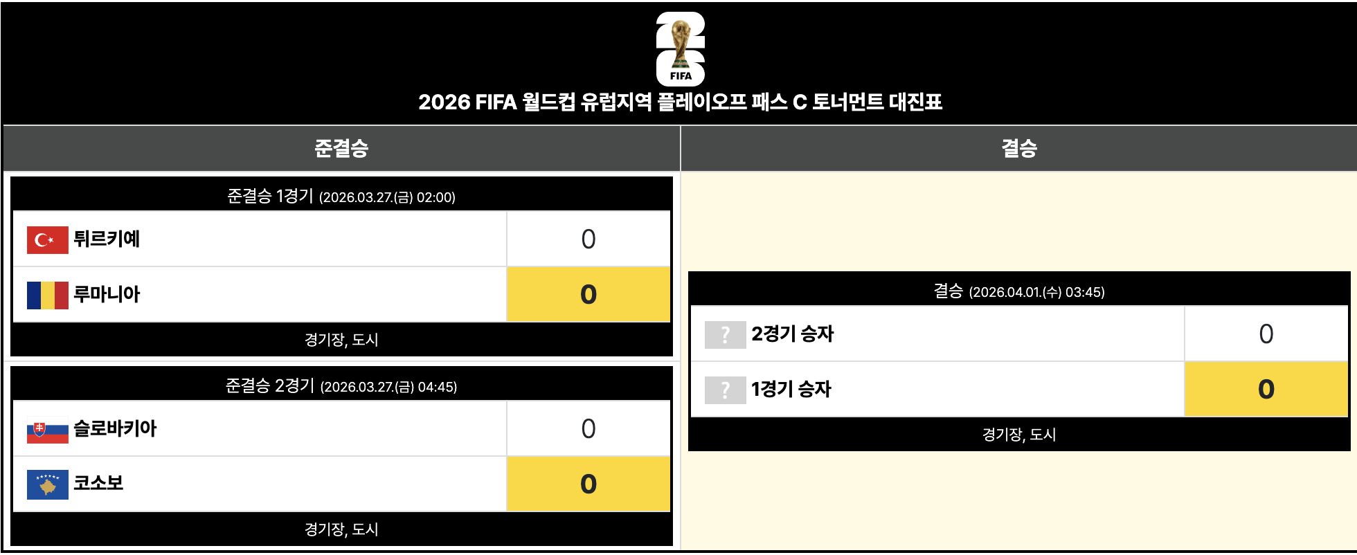 - 준결승: 2026년 3월 27일(금)
